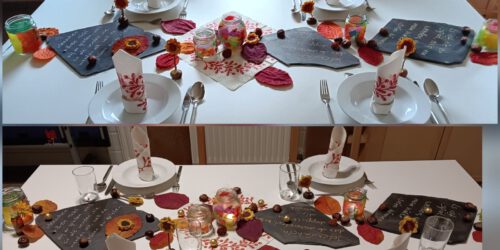 Wir hatten eine Geburtstagsfeier und es musste etwas Tischschmuck her!Da wir noch was rumstehen hatten, habe ich zum Teil Altes erneuert. So habe ich den Tischschmuck von April 2019 mit einem Schmetterling aufgewertet und neu mit Schokolade befüllt. Dann habe ich viele gleiche, leere Gläser für ein Licht und Blumen genommen.Die Gläser habe ich alle […]