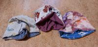 Drei Mützen sind entstanden jeweils mit zwei Stoffen, die man auch wenden kann. Also 2 in 1!